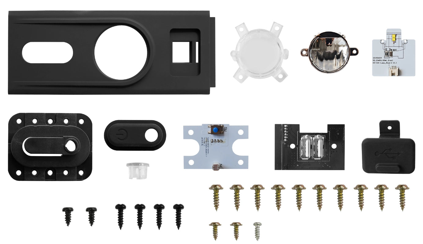 JMAPL00286 front panel 1pc + JMAPC00597 lighting board 1pc + JMAPL00167 front light cover 1pc + JMAPL00202 reflective layer 1pc + JMAPL00197 light sensing cover 1pc + JMAPL00188 switch base 1pc + JMASI00293 switch button 1pc + JMASI00294 USB dust cover 1pc + JMAPC00594 USB board 1pc + JMAPC00596 switch board 1pc + JMSFS01853 screws 10pcs + JMSFS02145 screws 2pcs + JMSFS02150 screws 4pcs + JMSFS00020 screws 3pcs