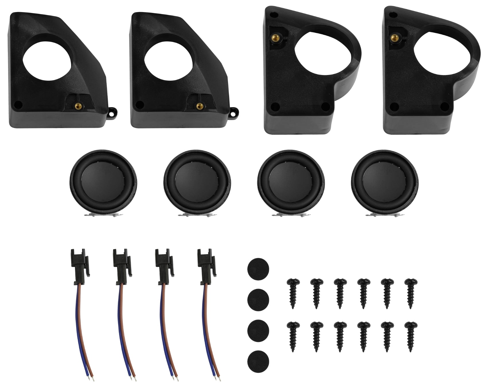 JMAPL00176 2pcs of left horn cavity + JMAPL00177 2pcs of right horn cavity + JMAAU00476 4pcs of round sponge pads + JMAAC00326 4pcs of horns + JMAWI00261 4pcs of horn wires + JMSFS02150 12pcs of screws